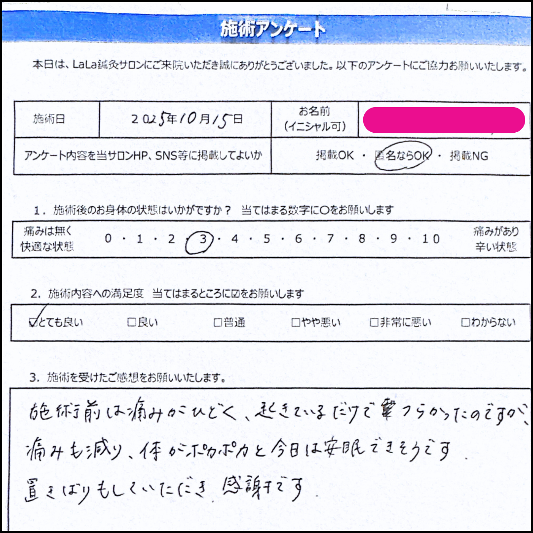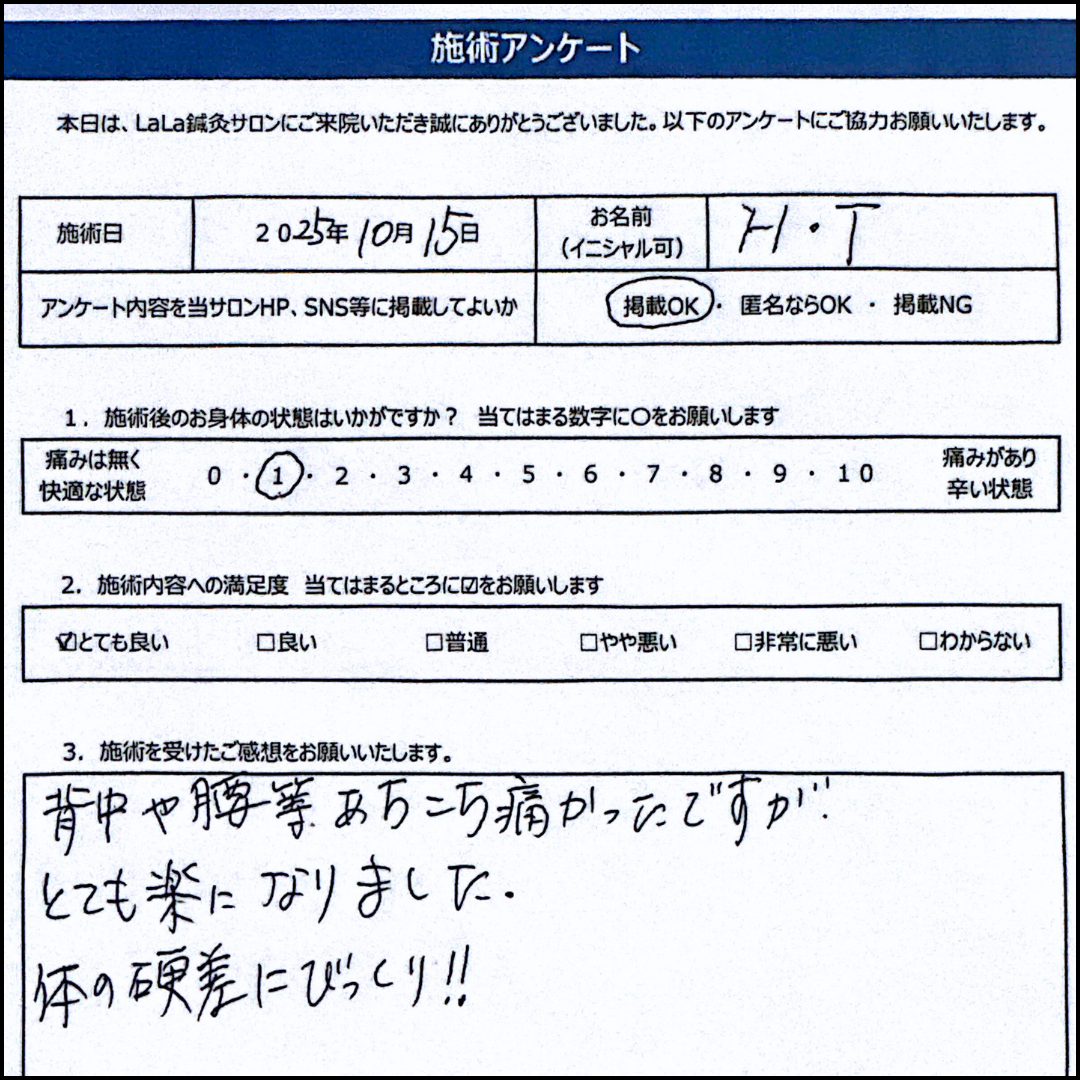 初回から「重だるさが取れた」「こんなに楽になったの初めて」「立った瞬間から楽!」と変化を実感される方が多数!
