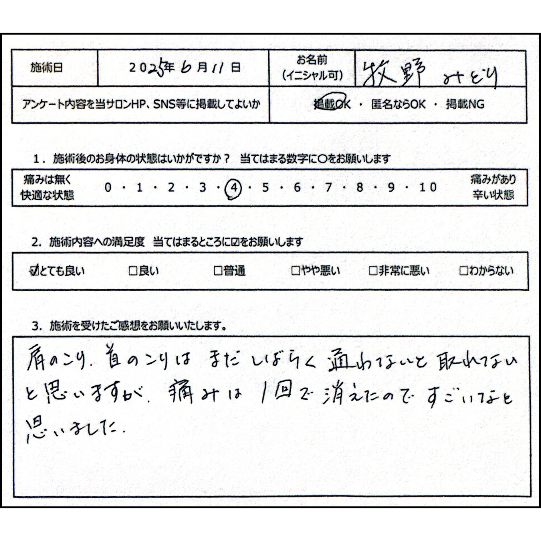 痛みを抱え込んでいる方には安心してお薦めできる治療院です♪