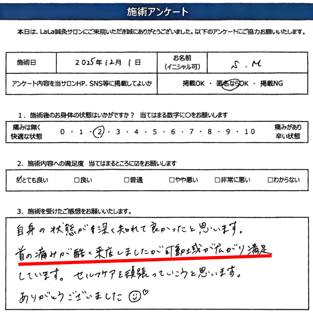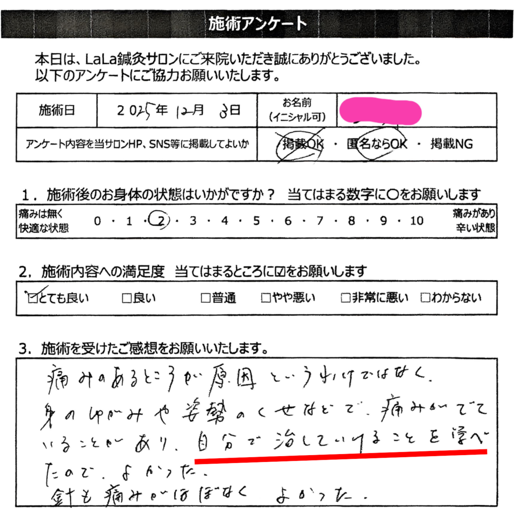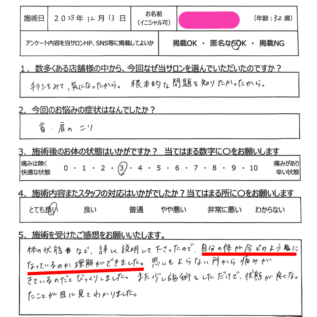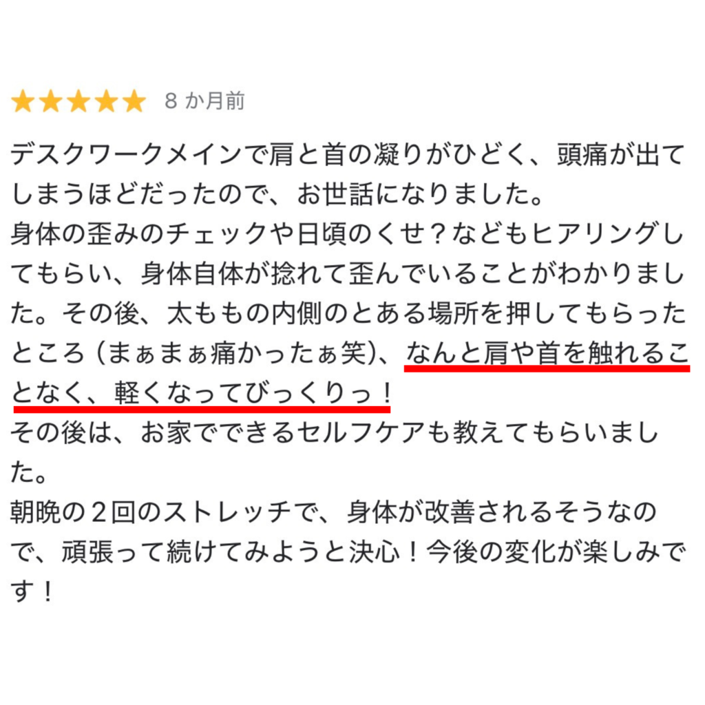 原因が1ヶ所なら、アプローチも最小で改善します。その場で変化するから「え?ここだけで?」と驚かれる方が多数。