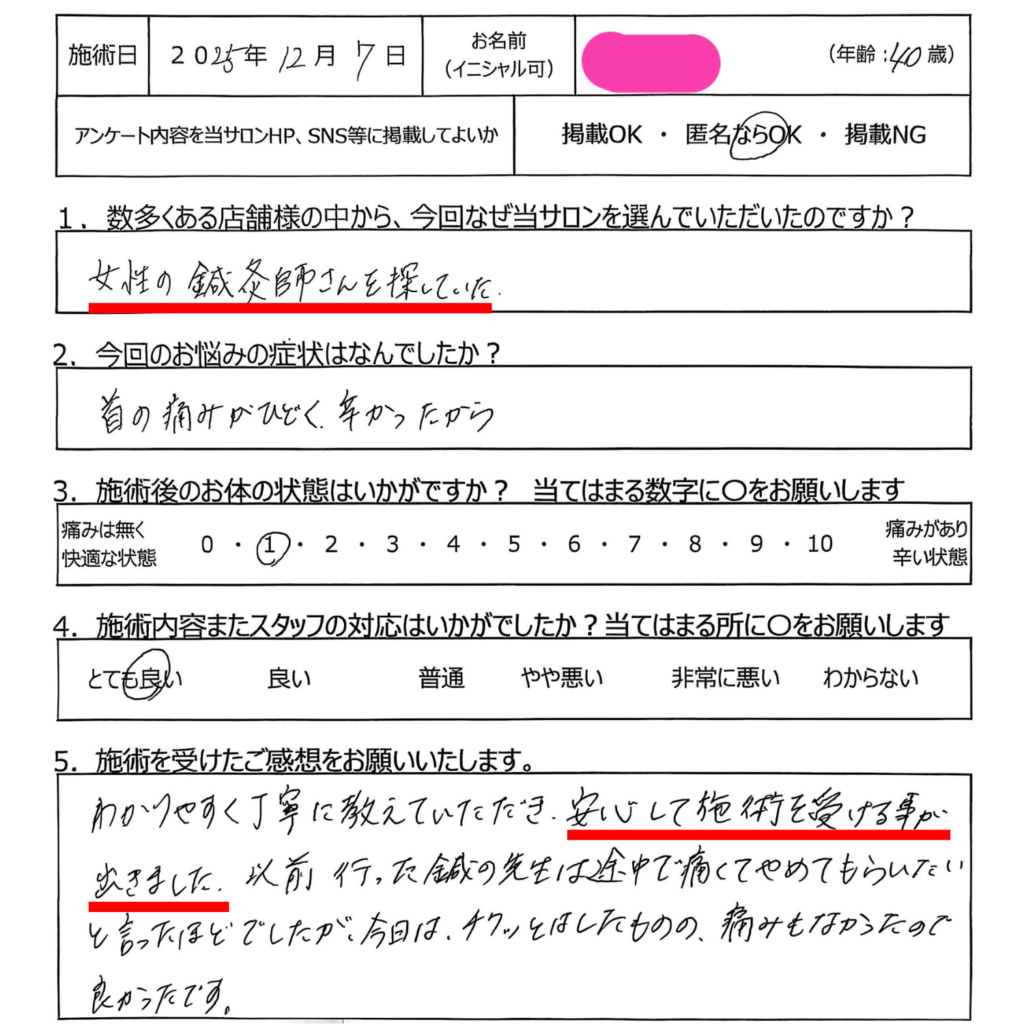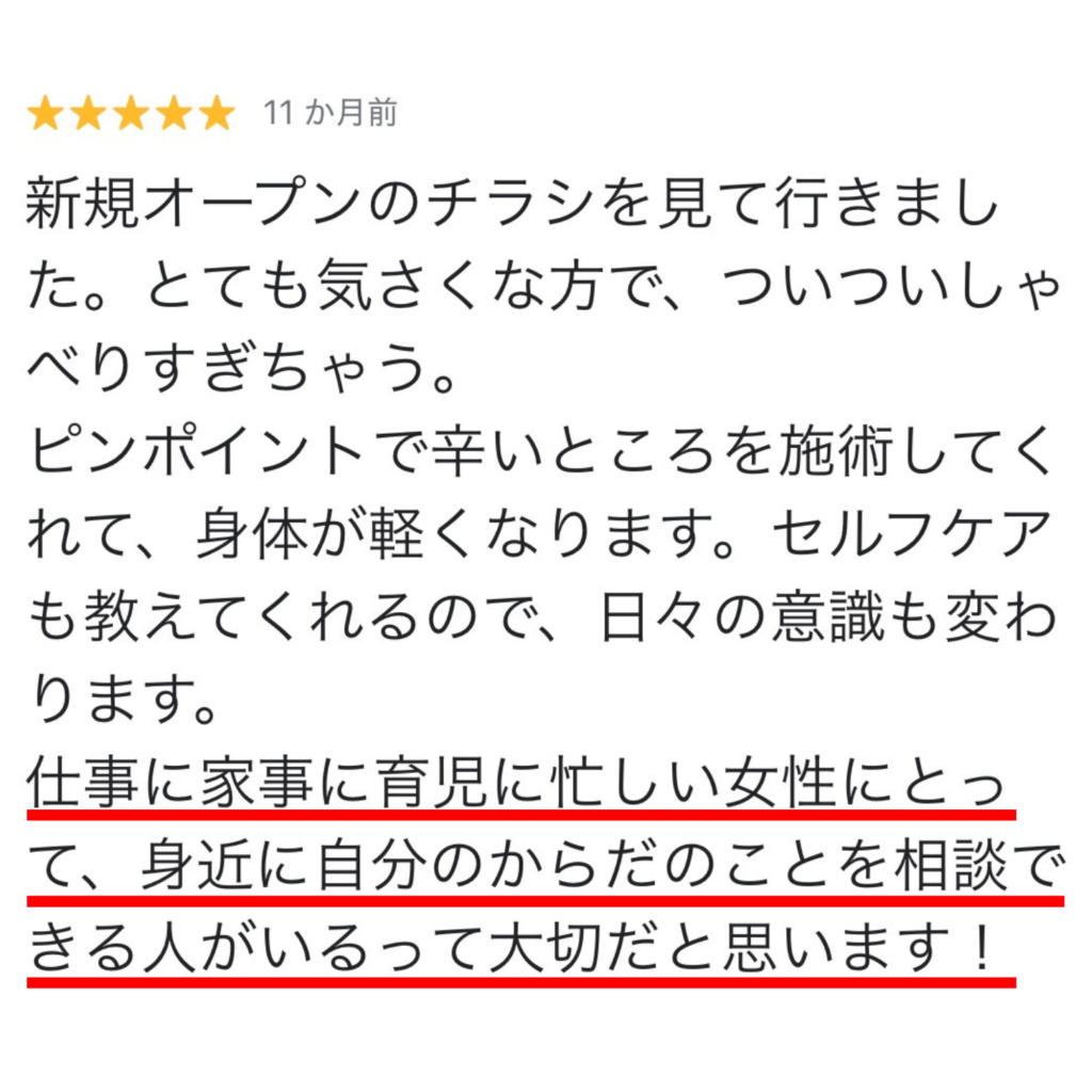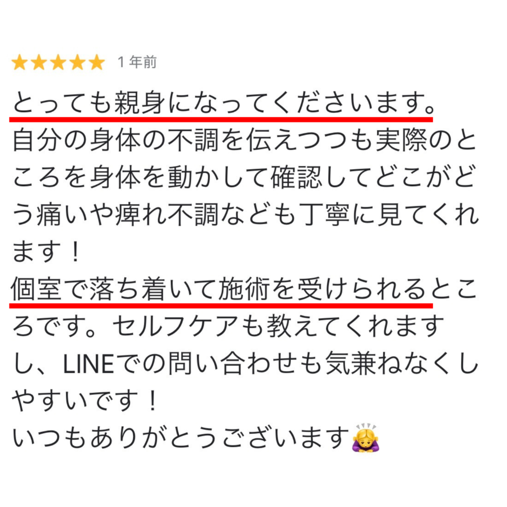 施術者が女性だからこそ