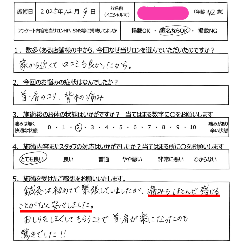 鍼灸治療後の反応