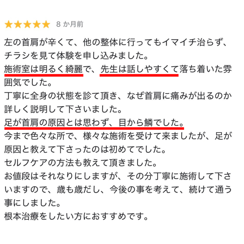 一貫した施術とアドバイスで