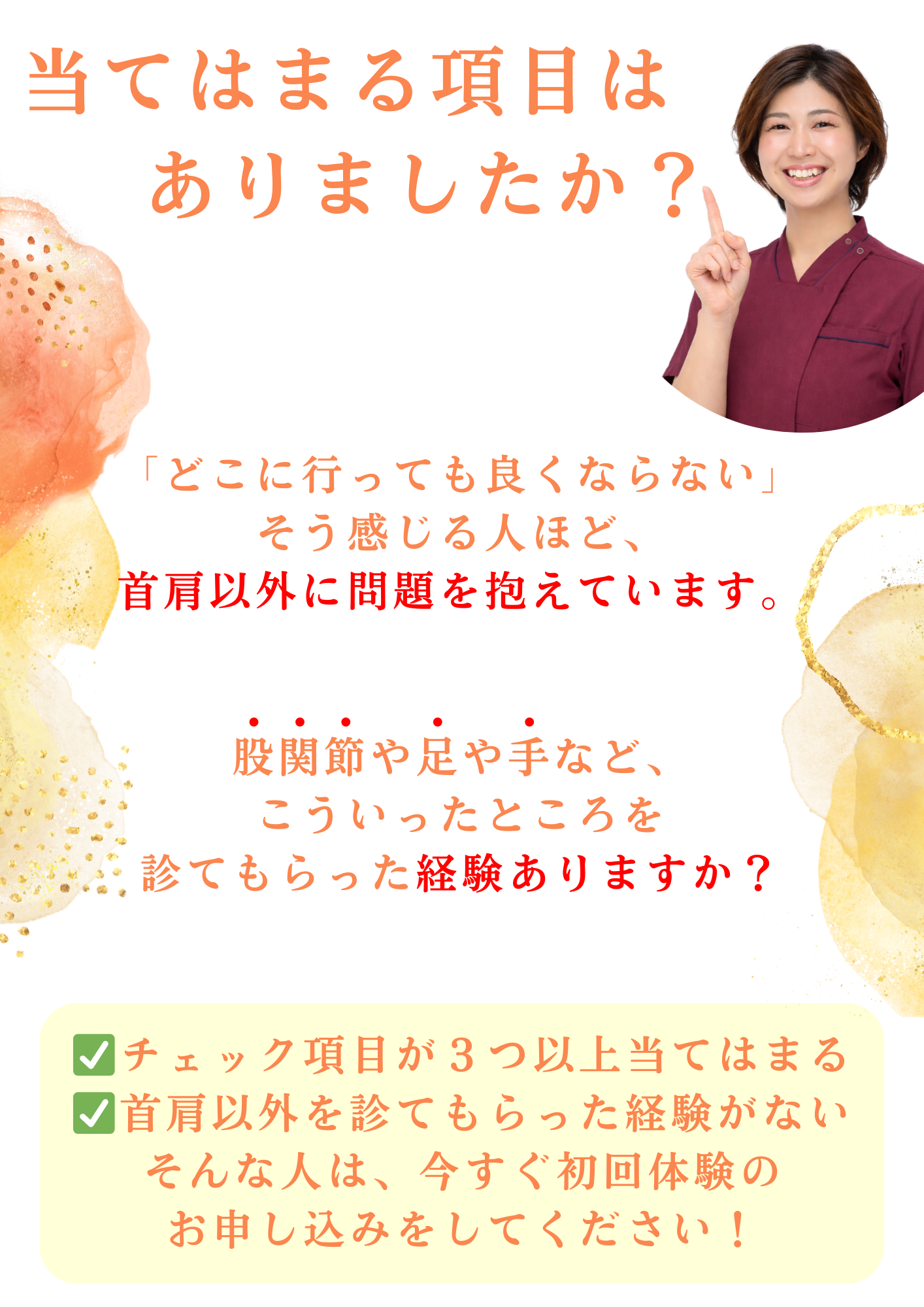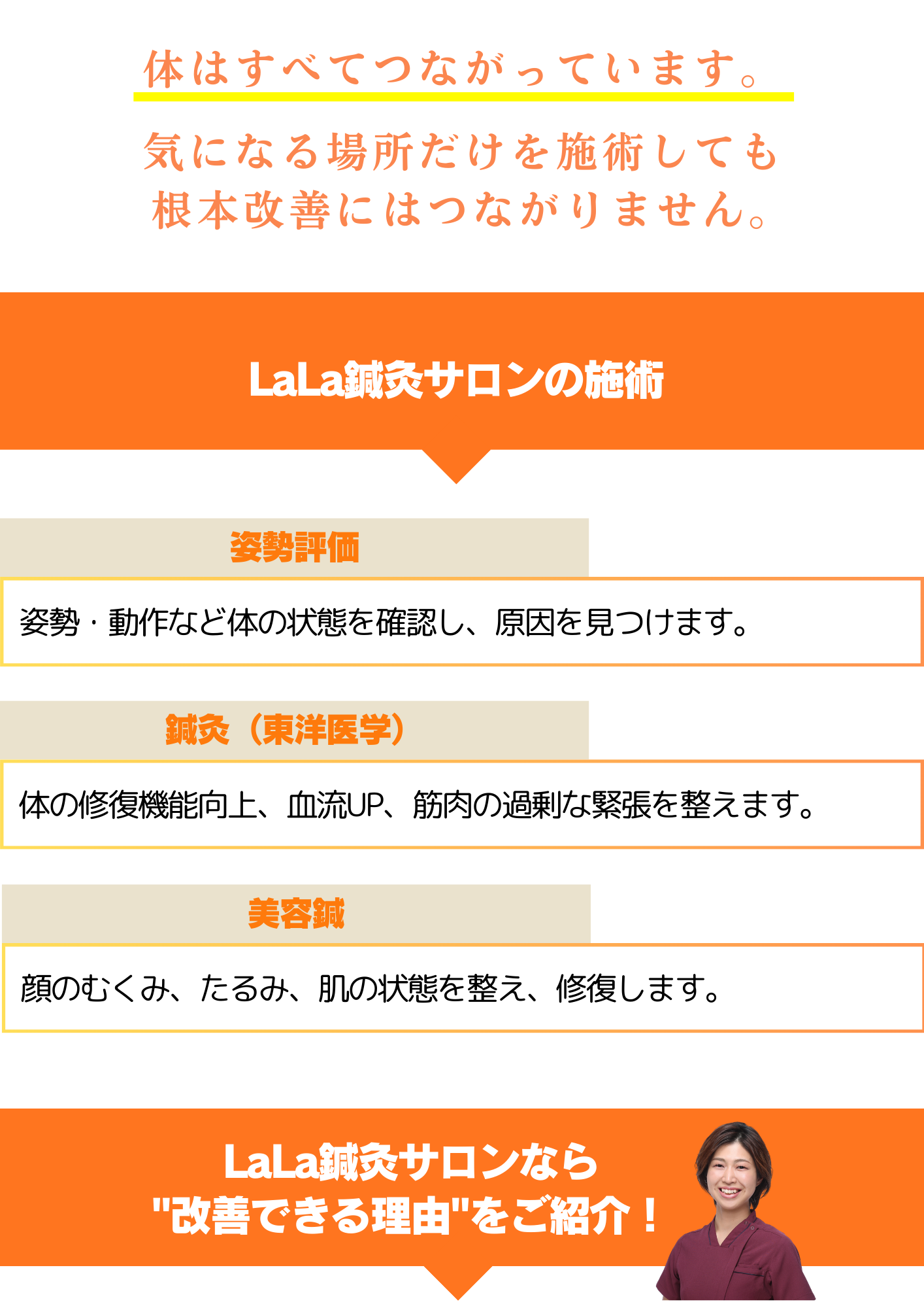 さらに!あなたの体に合うセルフケア指導を取り入れた最短ルートでお悩みを解決に導きます!